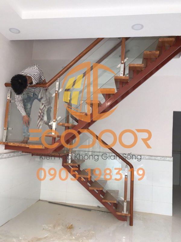 Cầu thang kính đẹp gỗ Đà Nẵng