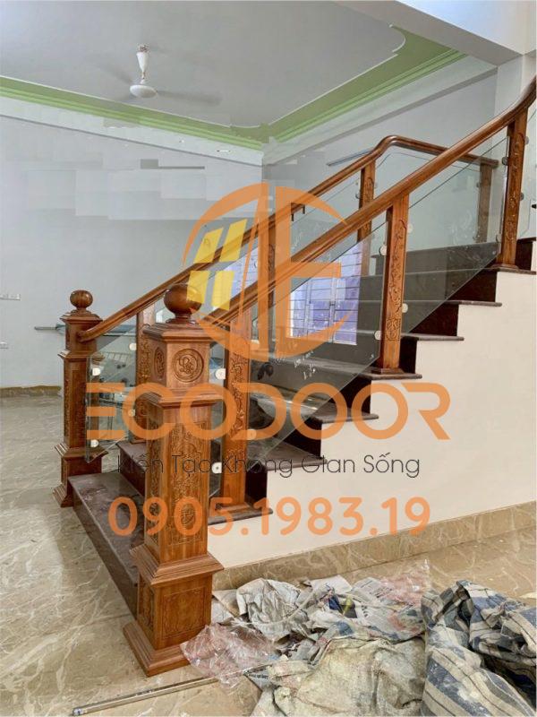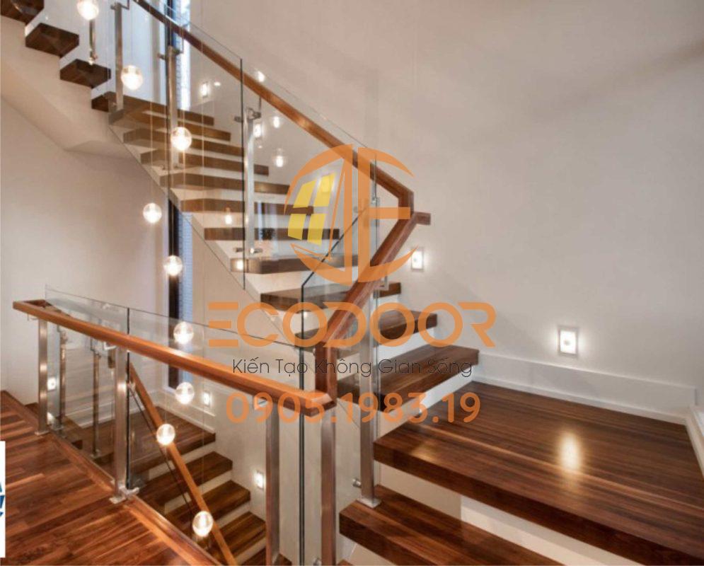Lan can kính kết hợp tay vịn gỗ độc đáo. Mang lại vẻ đẹp ấm áp, gần gũi. Gỗ tự nhiên tạo cảm giác sang trọng. Gỗ công nghiệp tiết kiệm chi phí. Phù hợp với phong cách nội thất cổ điển. Kính cường lực đảm bảo an toàn tuyệt đối. Tạo sự hài hòa giữa hiện đại và truyền thống. Tay vịn gỗ có nhiều màu sắc lựa chọn. Gỗ sồi, căm xe hoặc óc chó phổ biến. Thiết kế phù hợp với nhà phố Quảng Nam. Tăng tính thẩm mỹ cho cầu thang. Dễ dàng vệ sinh bề mặt kính. Gỗ được xử lý chống mối mọt. Đảm bảo độ bền qua thời gian. Phù hợp với gia đình yêu thiên nhiên. Lắp đặt cần đo đạc chính xác. Đội ngũ Eco Door hỗ trợ tận tình. Cam kết sản phẩm đạt tiêu chuẩn chất lượng. Mẫu này tạo điểm nhấn độc đáo. Phù hợp với xu hướng nội thất đa phong cách.